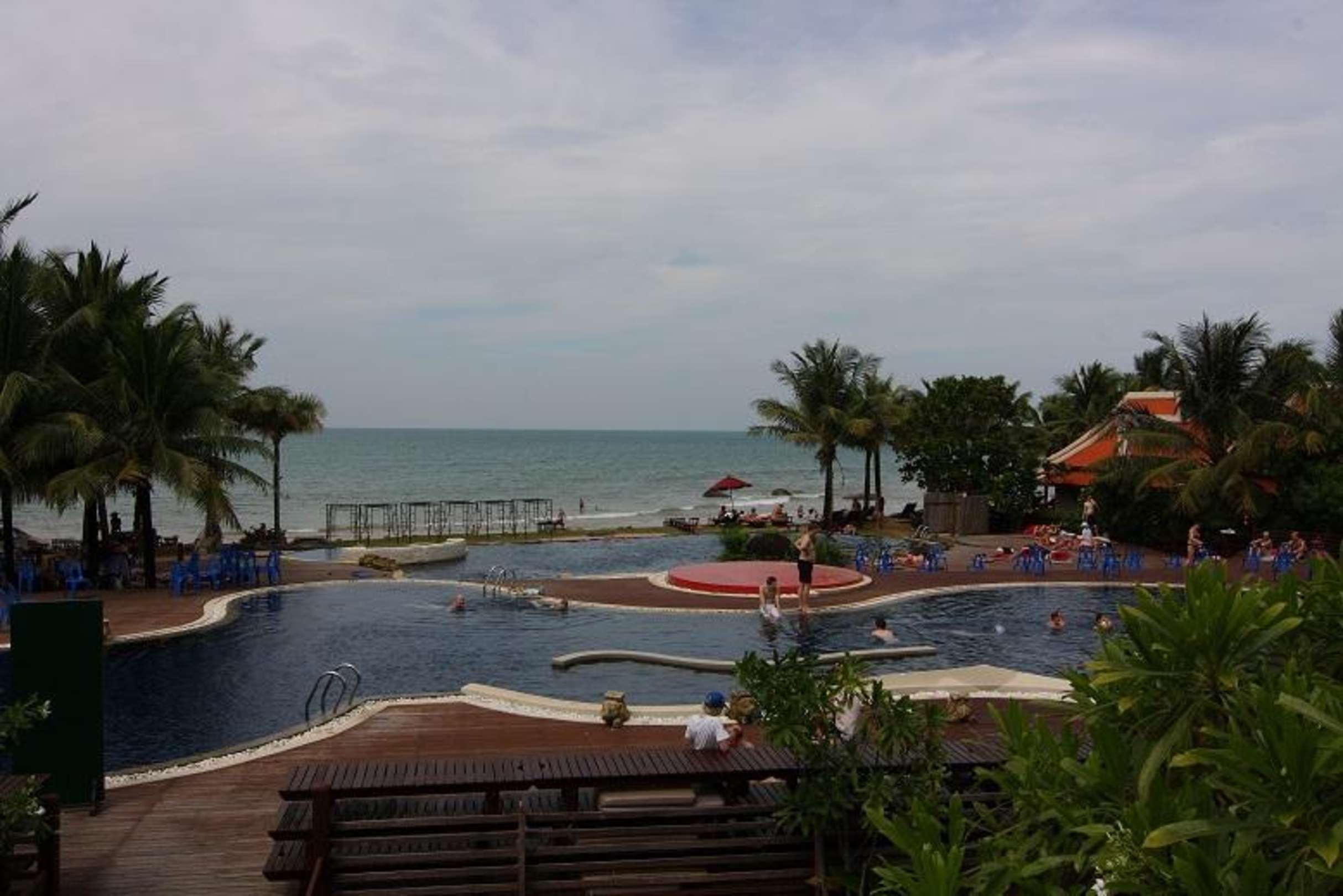 Blick auf Strand und Restaurant