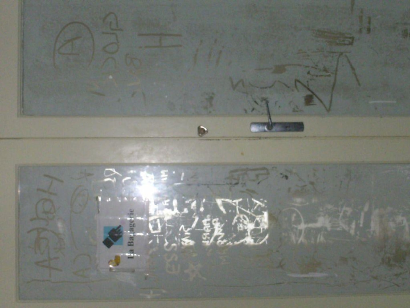 Graffitis sur les portes dans les couloirs dans la nouvelle aile.