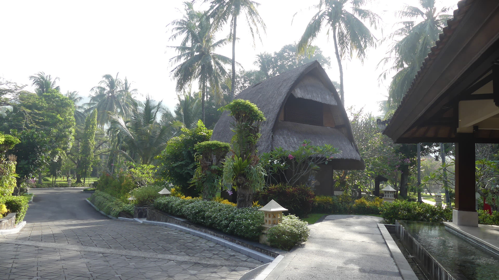 Auffahrt zum Hotel; im Rücken die Rezeption