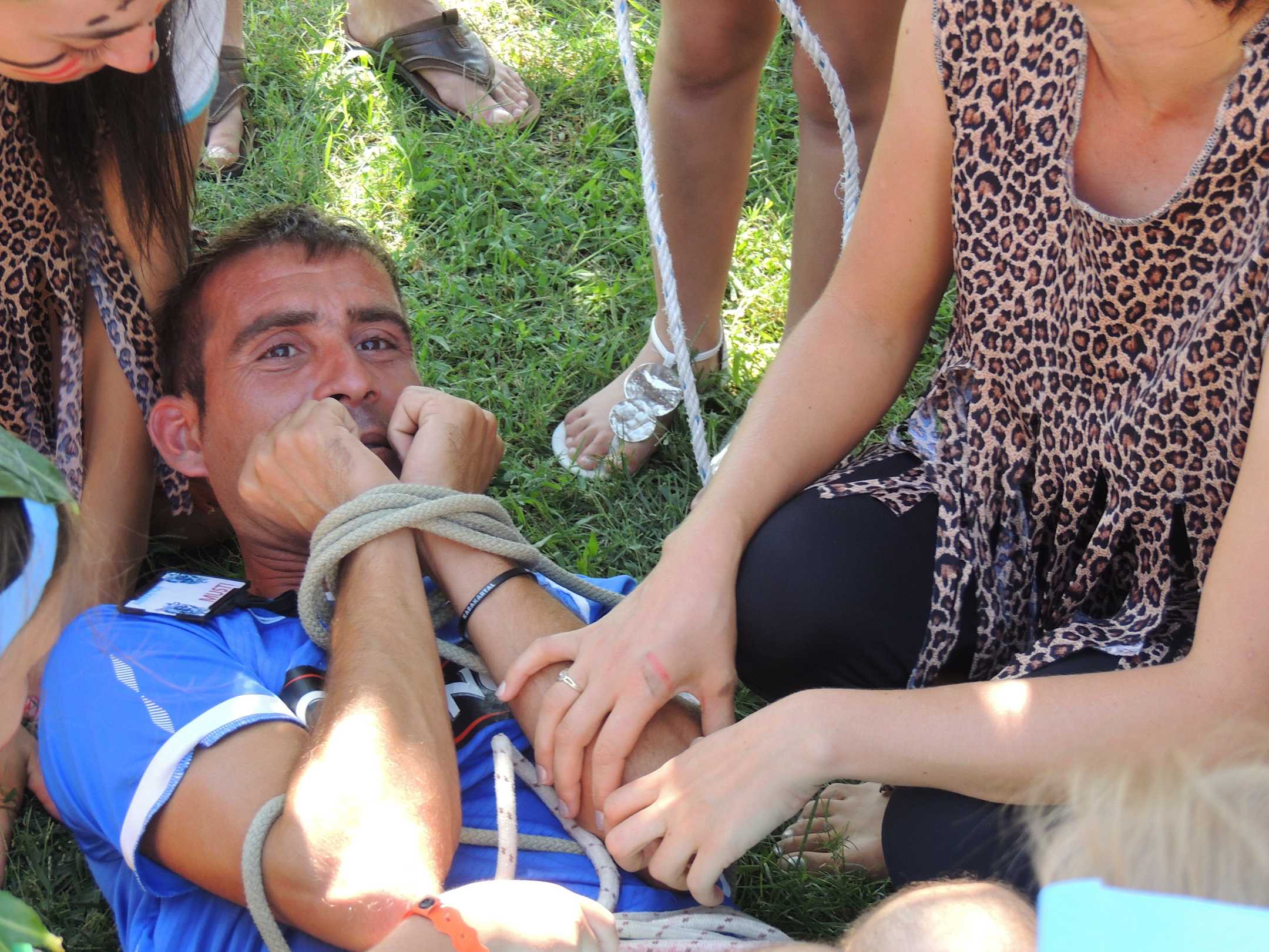Animateur Mustafa gefesselt von den Indianerkids