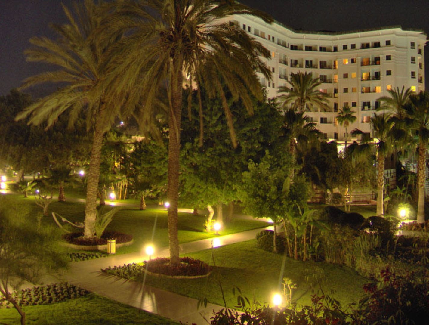 Hotelgarten bei Nacht