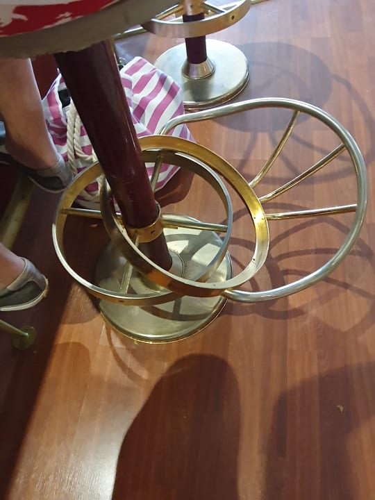 Ups...da fällt altersbedingt schon mal die Messinglehne mit einem lauten Getöse einfach vom Barhocker ab...und nein diese wurde auch in unserem gesamten Aufenthaltsdauer nicht wieder repariert oder der Barhocker ausgetauscht !