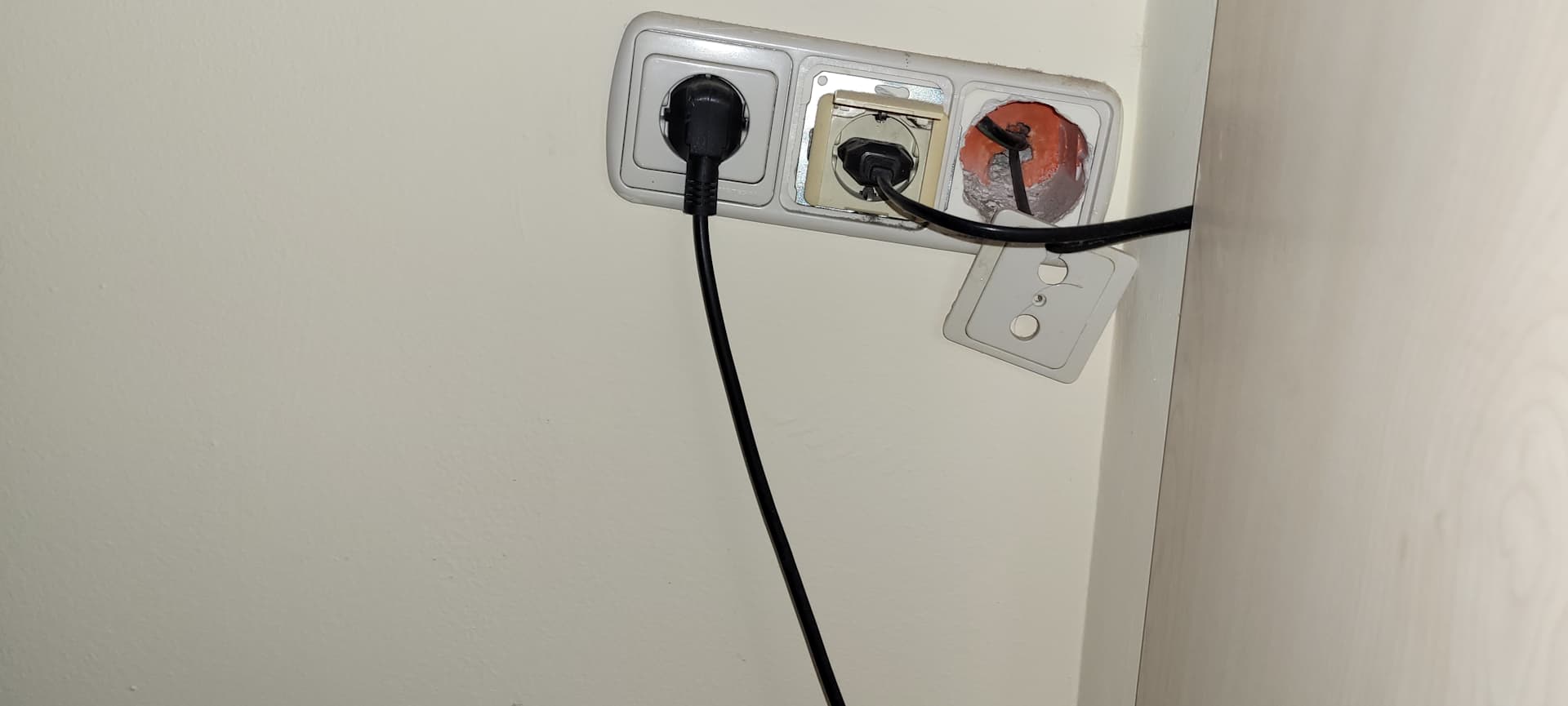 Dies war die Steckdose unter dem beschmutzen Schminktisch