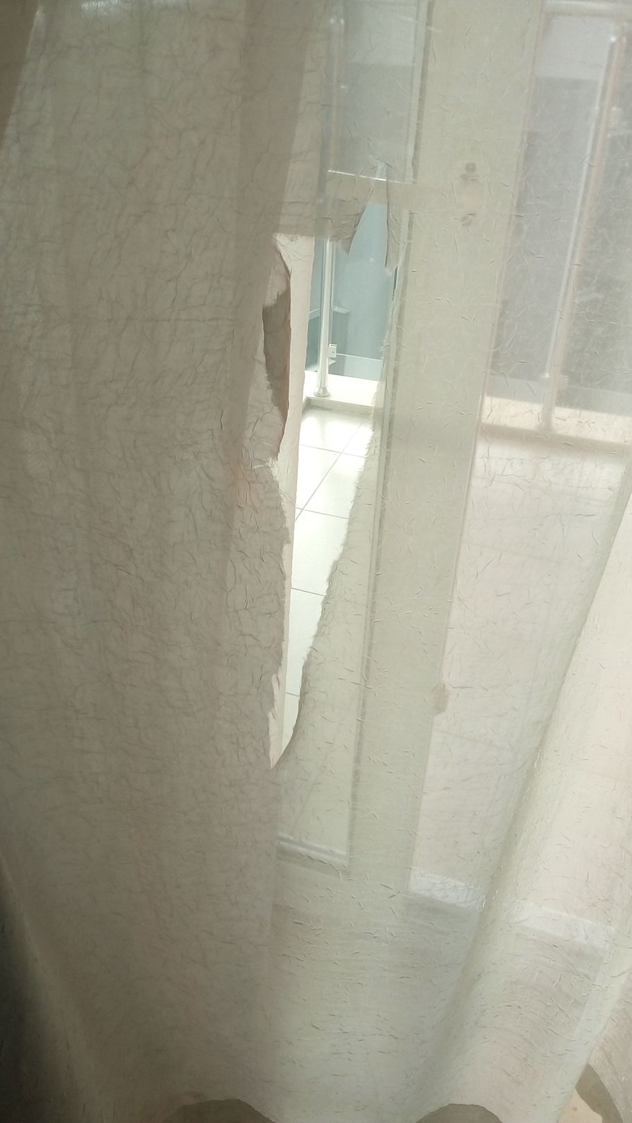 Gardine hängt in Fetzen