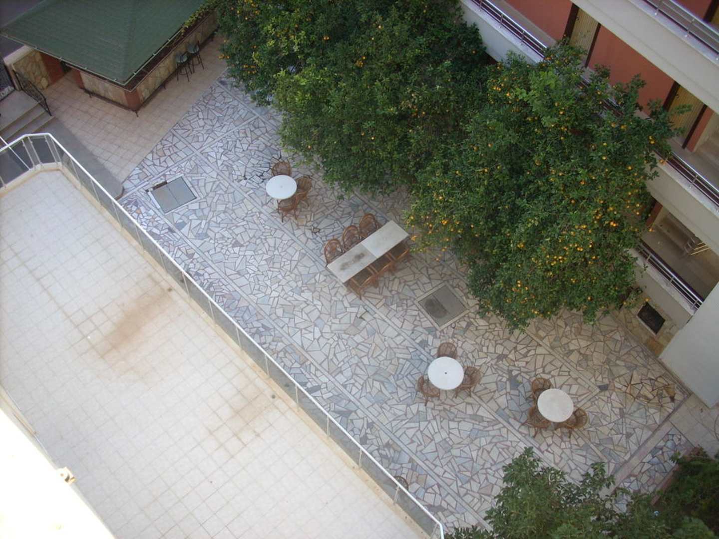 Ausblick vom Balkon auf die TerrasseAuch im Winter war es angenehm draußen zu sitzen, wenn nur nicht diese Hühner und Katzen gewesen wären...