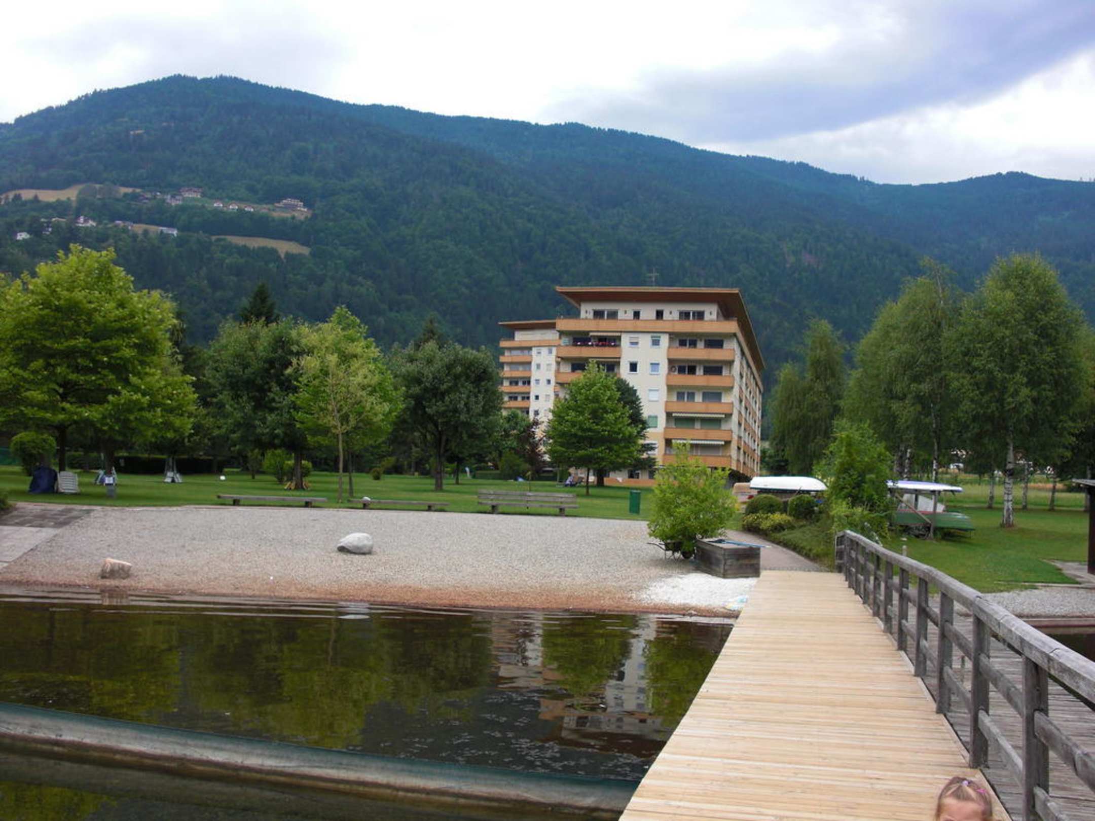 Das ist vom Steg über die Liegewiese zur Wohnanlage