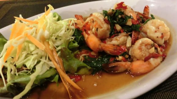 Leckere , gebratene Shrimps Es wurde auch immer frischer Fischfang zur Auswahl angeboten