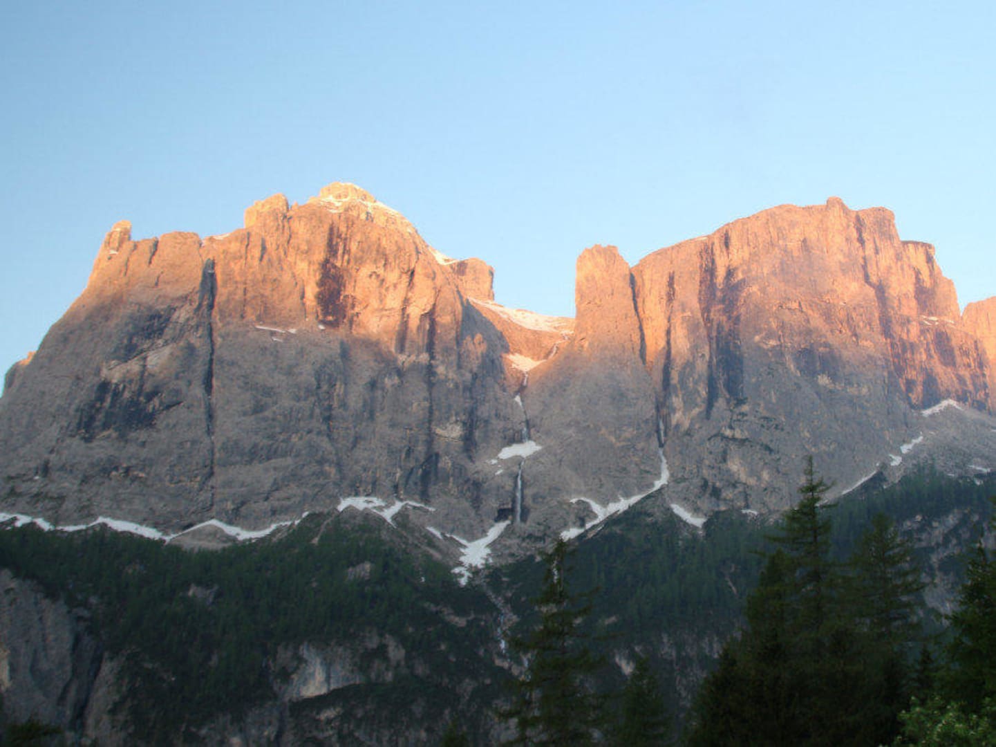 Morgendlicher Blick vom Balkon auf das Sella Massiv