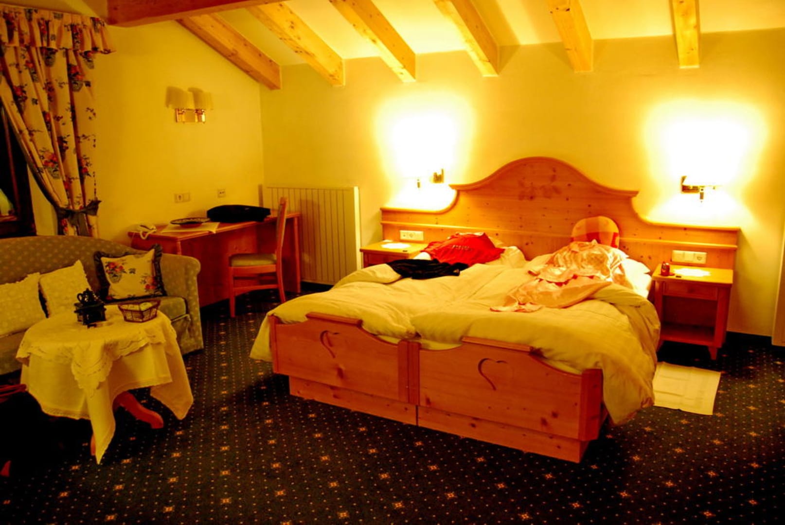Gemütliches und geschmackvoll eingerichtetes Zimmer mit 2 Balkonen und viel Platz zum verweilen. Liebevoll hergerichtete Betten, in denen es sich vorzüglich schläft. WLAN Anschluß leider nur gegen Gebühr.