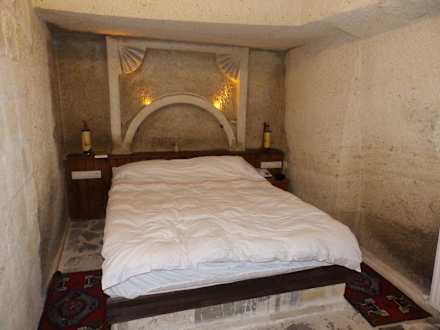 Tief in den Tuff gehauener Schlafbereich.