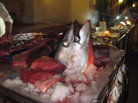 An diesem Abend war das Thema Fisch, hier wird ein Riesentunfisch zerlegt.