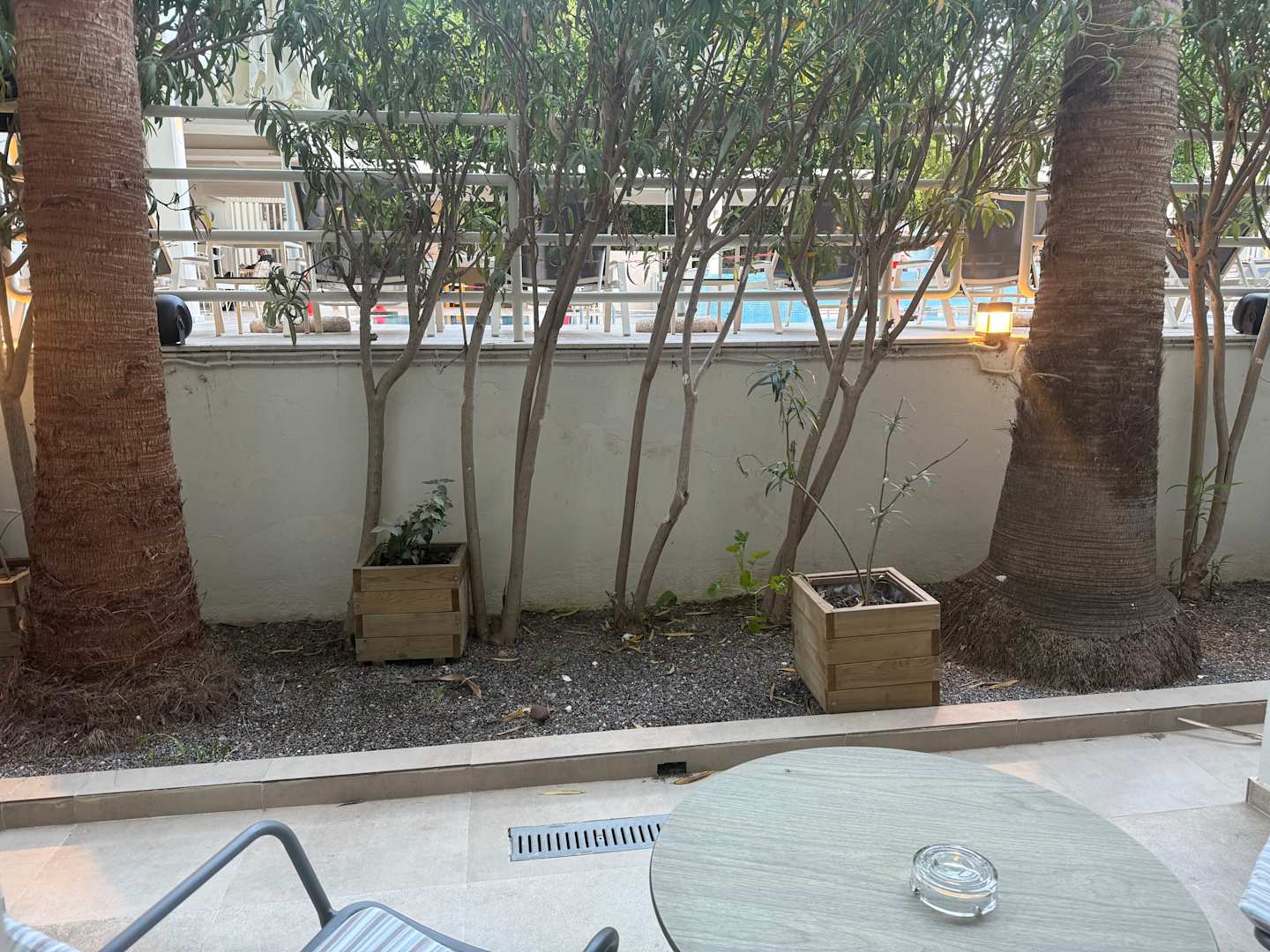 Zimmer im Souterrain mit Blick auf Pool