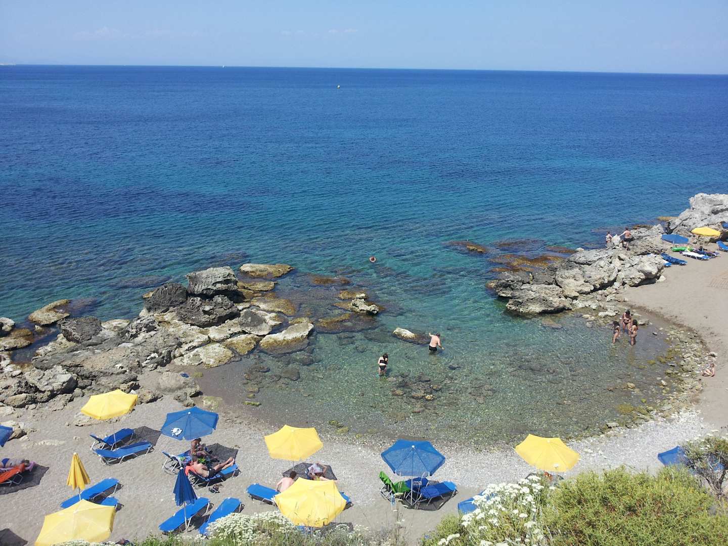 Sandstrand mit Kies im Wasser - Badeschuhe Badeschuhe nicht vergessen, läd zum schnorcheln ein, ansonsten hat es in der Umgebung viele andere Strände. 20 Minuten mit dem Auto kommt unserer Meinung nach der schönste Strand, Tsambika Beach!!! traumhafte Kulisse und feiner Sand, nur wenig Kies!