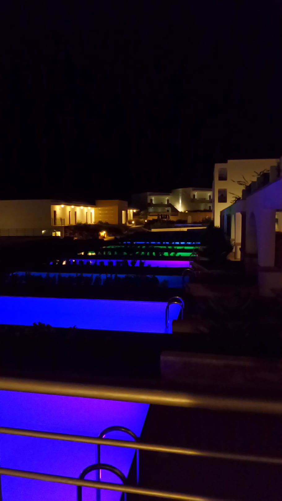 Privatpools am Abend beleuchtet