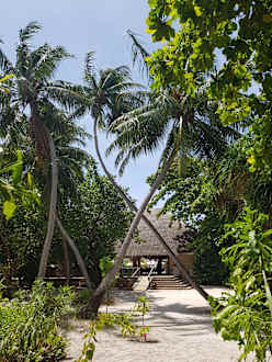Blick vom Weg in Richtung JuJu-Bar und Pool