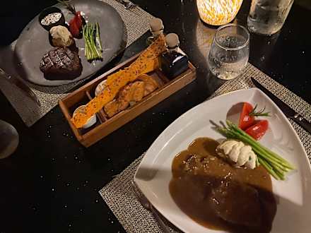 GastroHauptspeise im Island Barbeque (Steak-Restaurant): Black Angus Tenderloin und Steak Diane flambiert