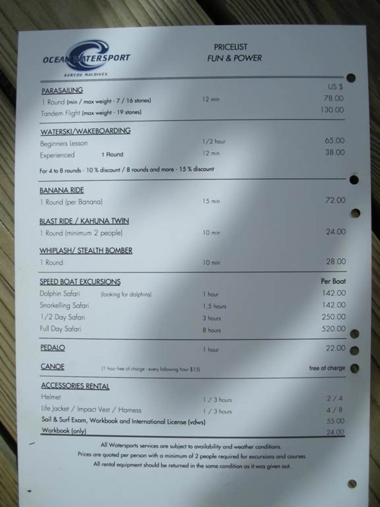 Fun&Power Preisliste auf Kuredu Island