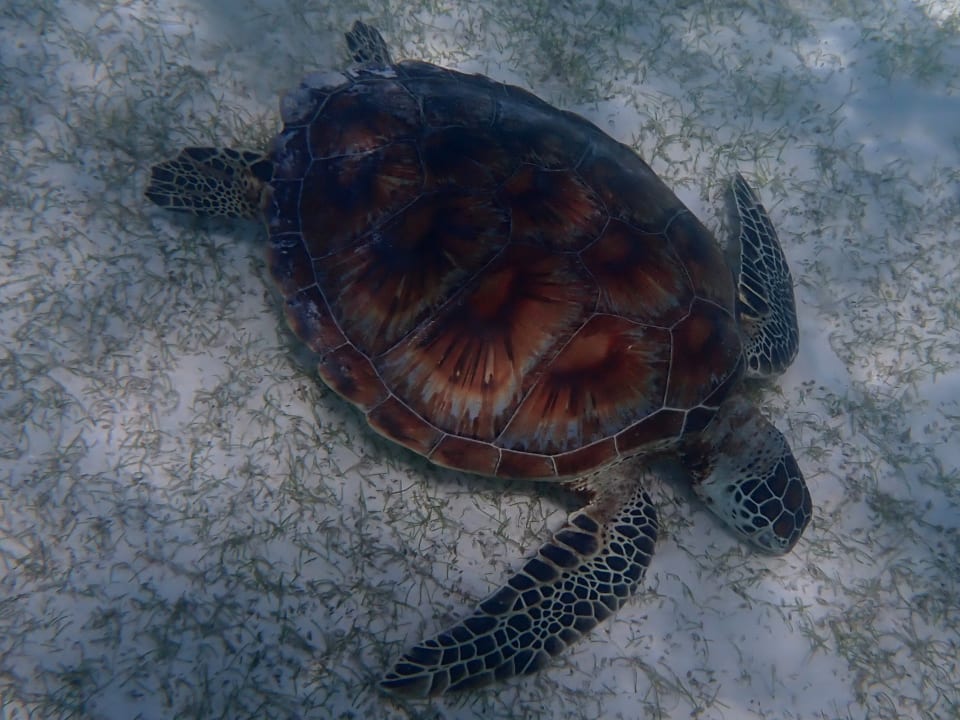 Beim Schnorcheln begegnet man häufig Schildkröten.