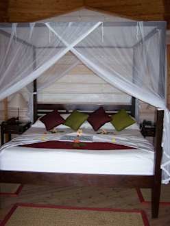 Unser Honeymoonbett im Wasserbungalow