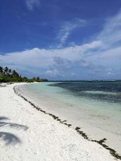 Strand direkt vor den Beach Bungalows. Das Dunkle sind Steine.