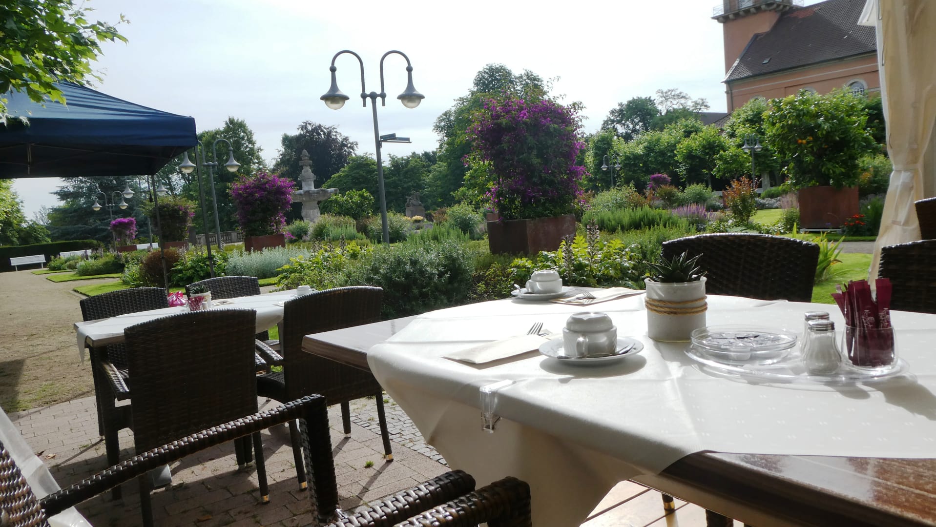 Frühstück auf der Terrasse zum Park