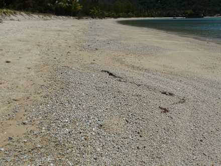 wörtlich lt. Airtours-Katalog: "weißer Sandstrand". Foto direkt vor den Lagunenvillen aufgenommen, am allgemein zugänglichen Strandabschnitt.