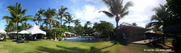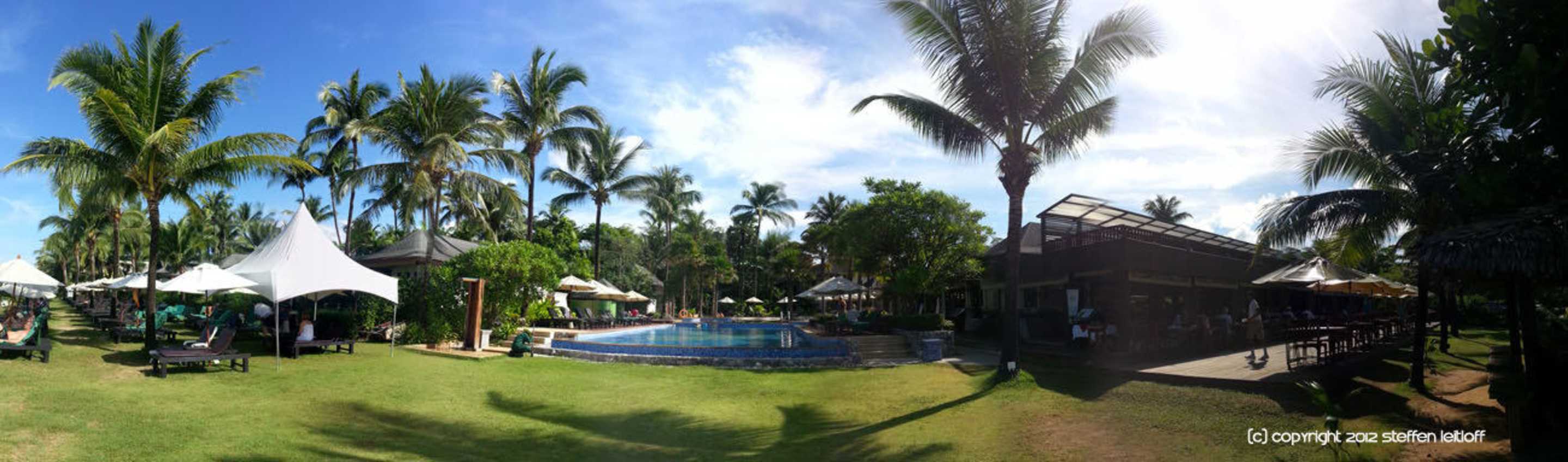 Panorama mit Blick auf die Hotelanlage vom Strand