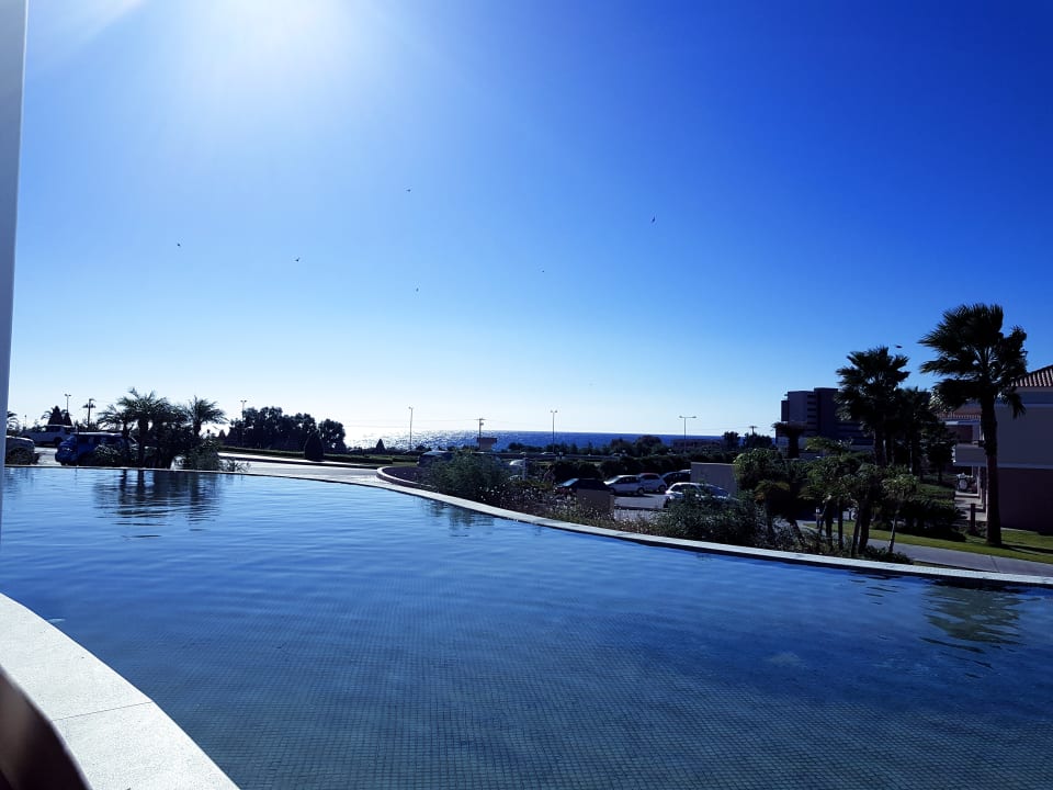 AusblickBlick vom Restaurant ( Frühstück ), im Hintergrund blau das Meer, die Plätze draußen sind sehr begehrt.