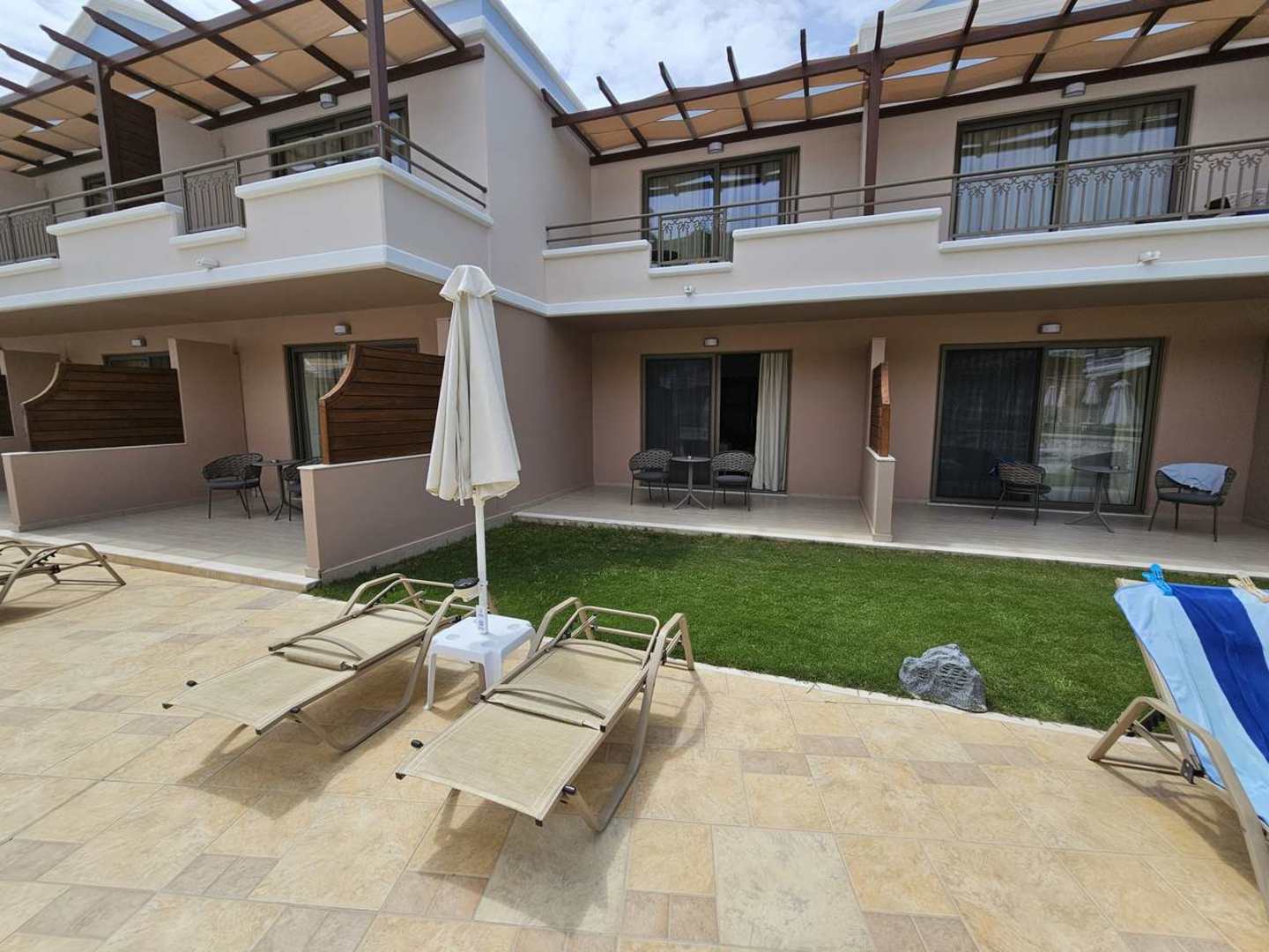 Juniorsuite mit direktem Zugang zum Pool, Erwachsenenbereich, Liegen und Sonnenschirm gehören zur Suite