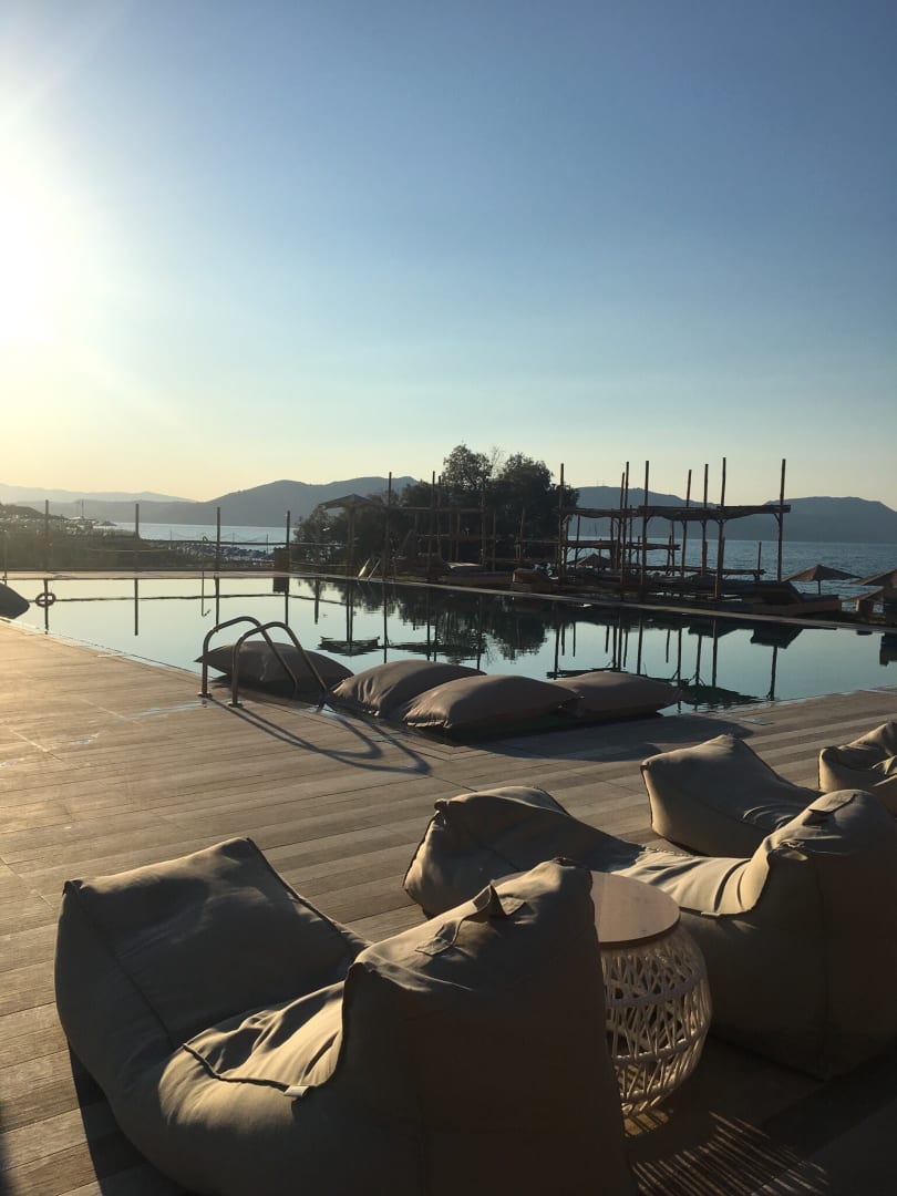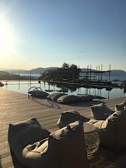 Hippe Liegen am Pool - Schattenplätze gibt es auch