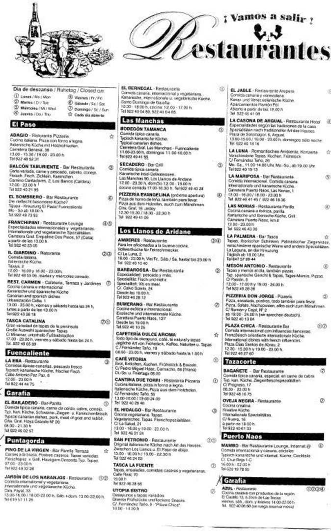 Eine kleine Auswahl guter Restaurants auf La Palma