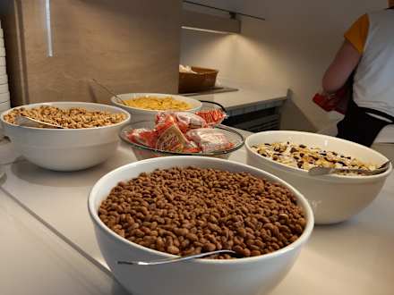 Müsli und mehrere Cornflakessorten zum Frühstück.