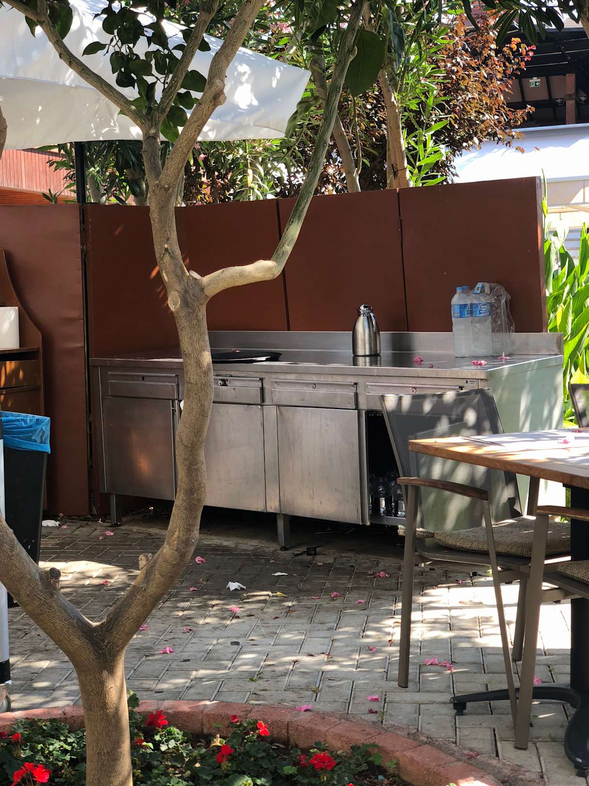Morgens beim frühstücken Juli 2018 ... siehe unter dem Tisch essenreste!!! Ratten !!!!!