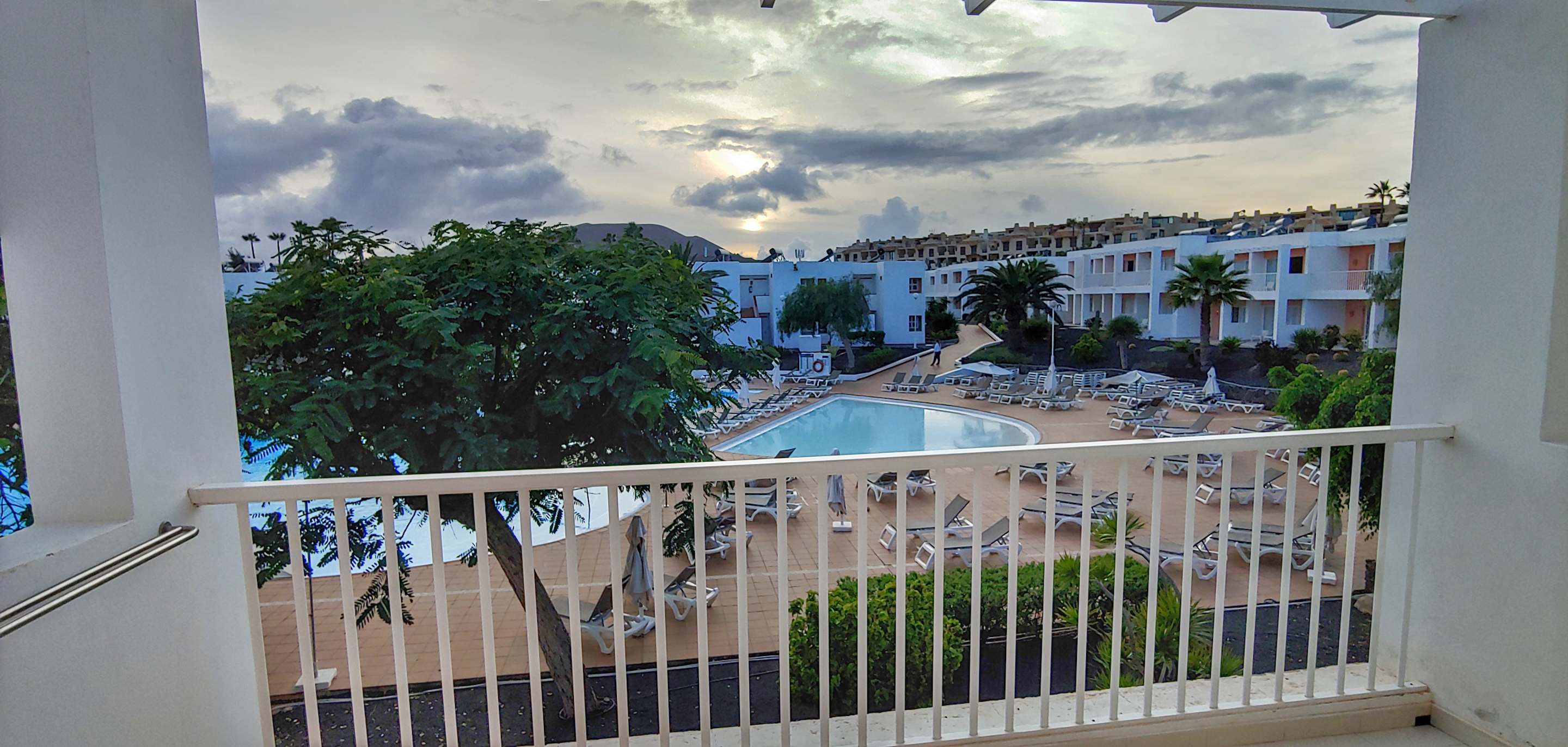 Blick vom Balkon auf die Poolanlage