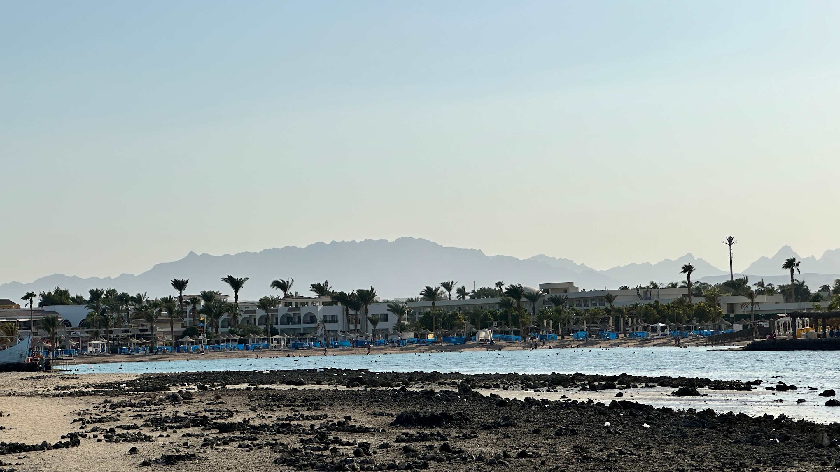 Blick von der Riffinsel zum Hotel