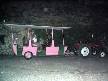 Dieser Traktor zieht kletterunwillige Gäste zum Strand bzw. vom Strand wieder zum Hotel.