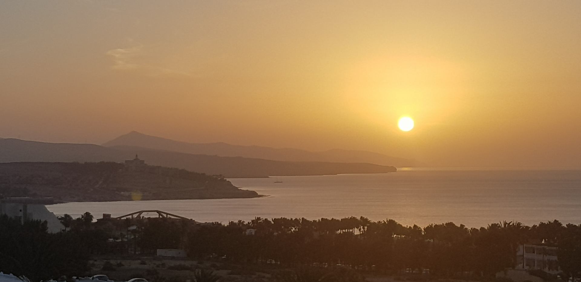 Sonnenaufgang mit Blick aus dem Zimmer aufs Meer