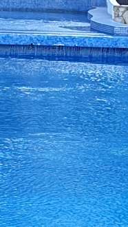 Wasserfall zum Pool unten 3cm dicker Schwarzschimmel.