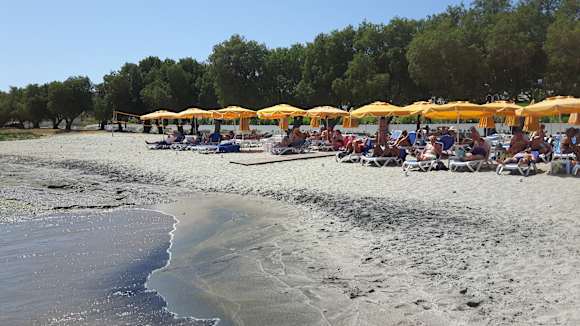 Preis pro Schirm incl. 2 Liegen/Tag beträgt 6 €