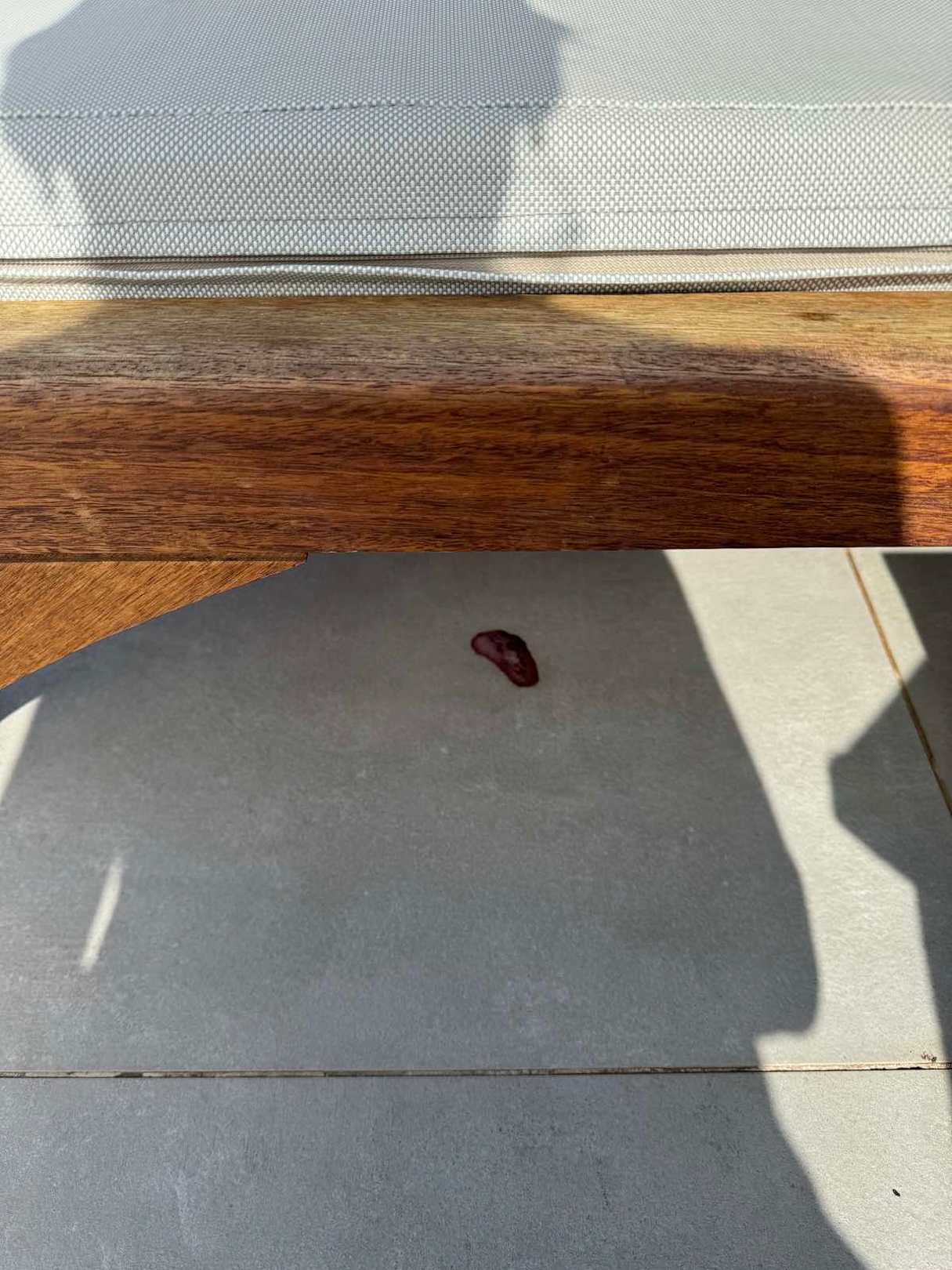 Da hat sich eine der streunenden Katzen besonders "angestrengt". Saubermachen Fehlanzeige. Die Spuren davon sind den ganzen Tag rund um den Pool zu sehen.