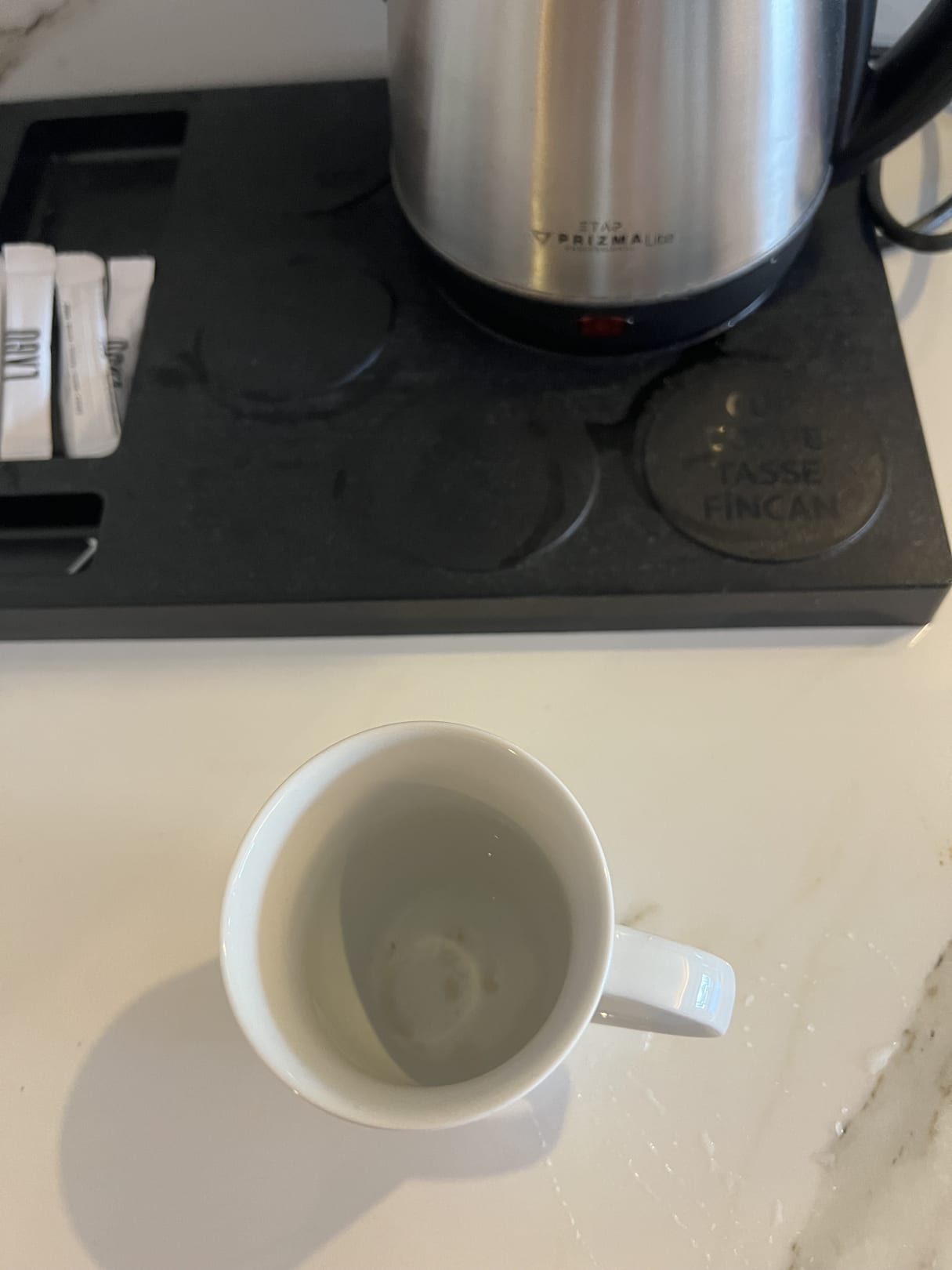 Manchmal waren die Tassen nass, ich nehme an, sie wurden per Hand am Waschbecken „gereinigt“…