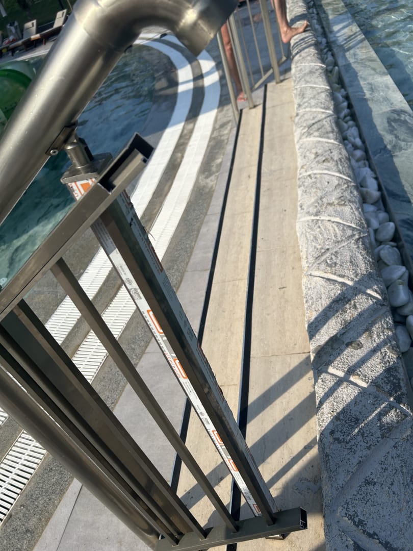 Viele bauliche Mängel am Babypool. Scharfe Kanten am Geländer