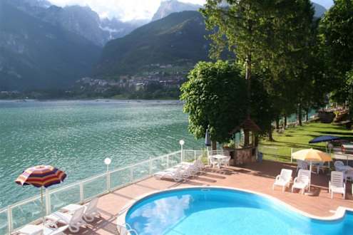 Piscina sul lago fronte Dolomiti