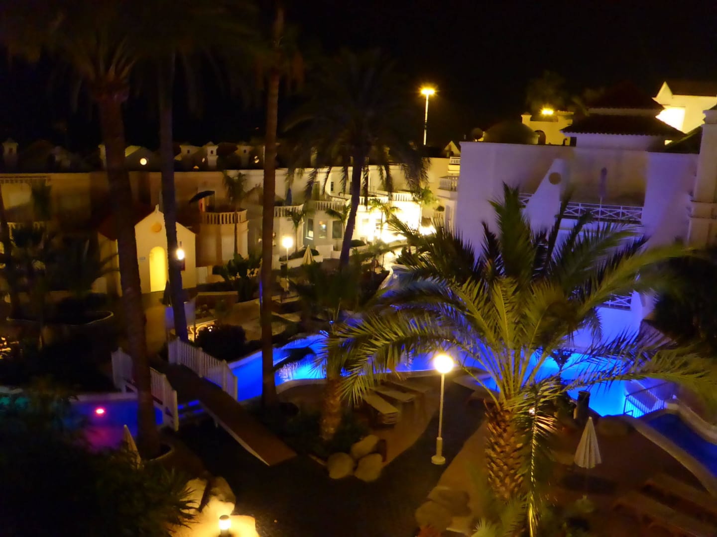 Untere Poolanlage bei Nacht
