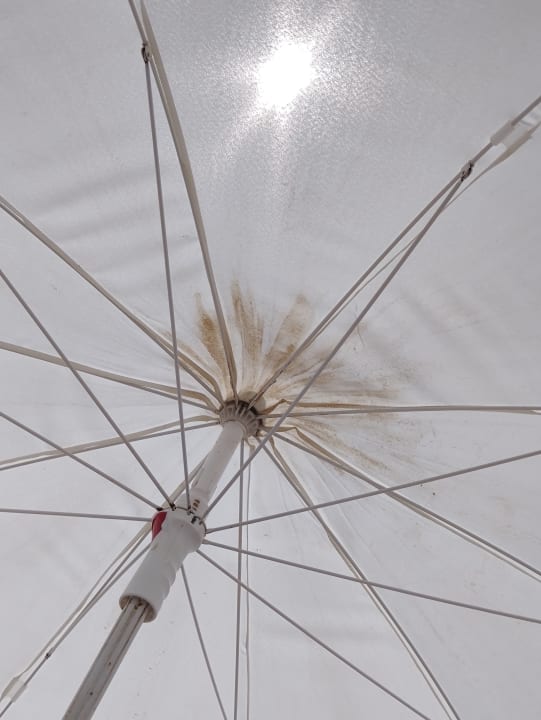 Am hoteleigenen Strandabschnitt die Sonnenschirme...schon leicht in die Jahre gekommen.