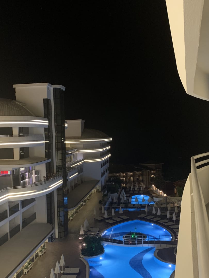 Am Abend Blick auf den Pool