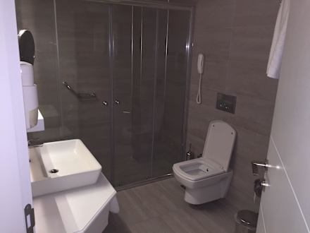 Unser Bad mit einer Regendusche