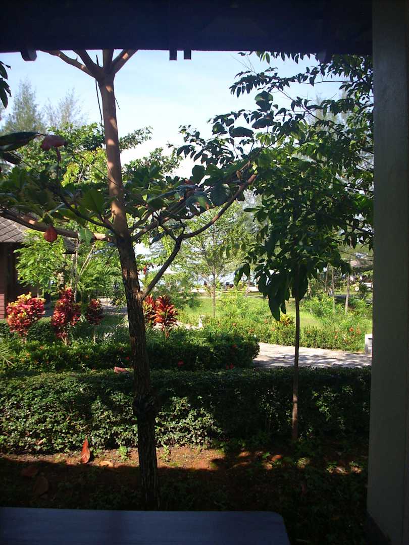 Blick vom Bungalow in den Garten