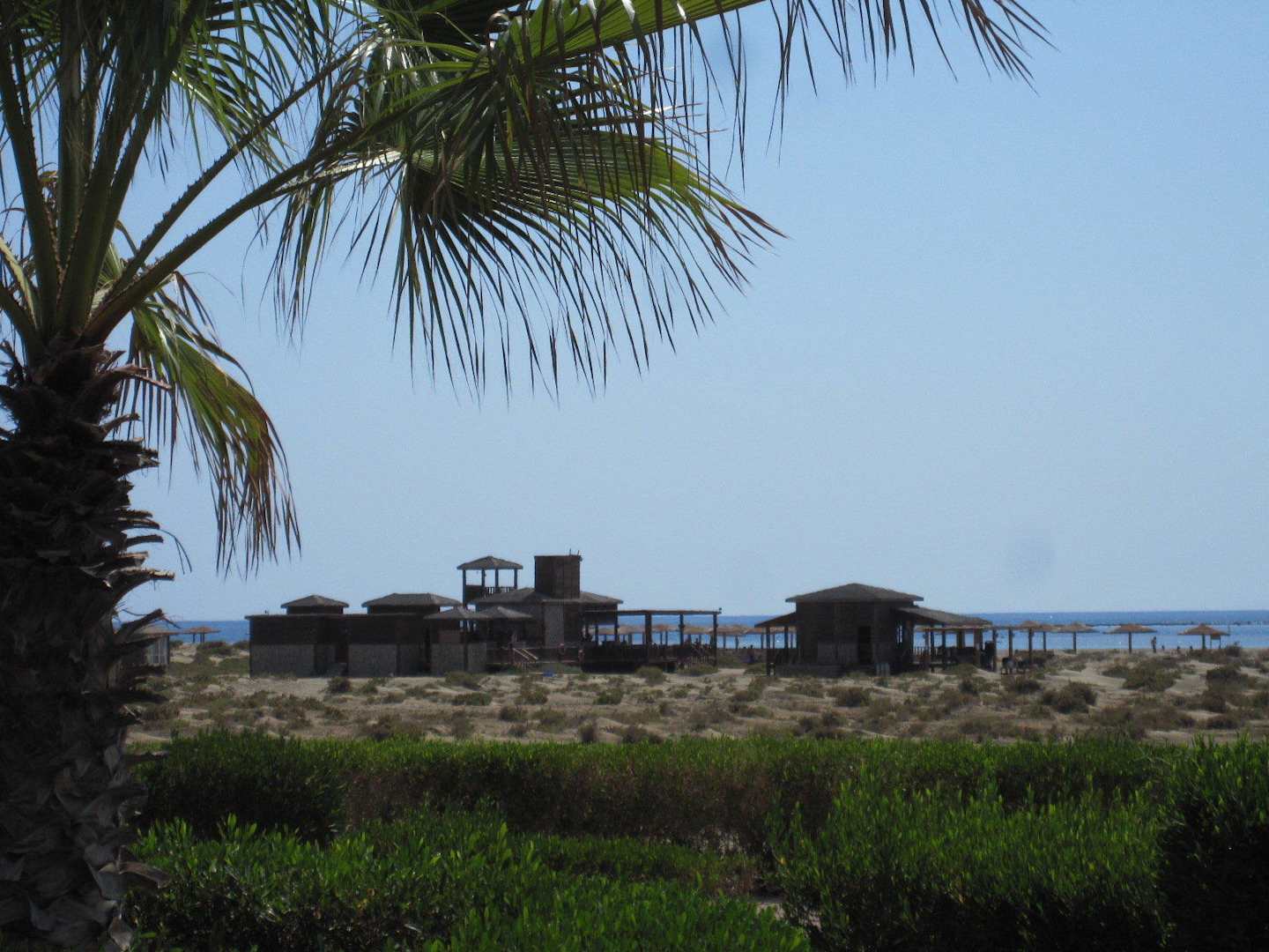 Links Strandrestaurant, rechts Tauchschule