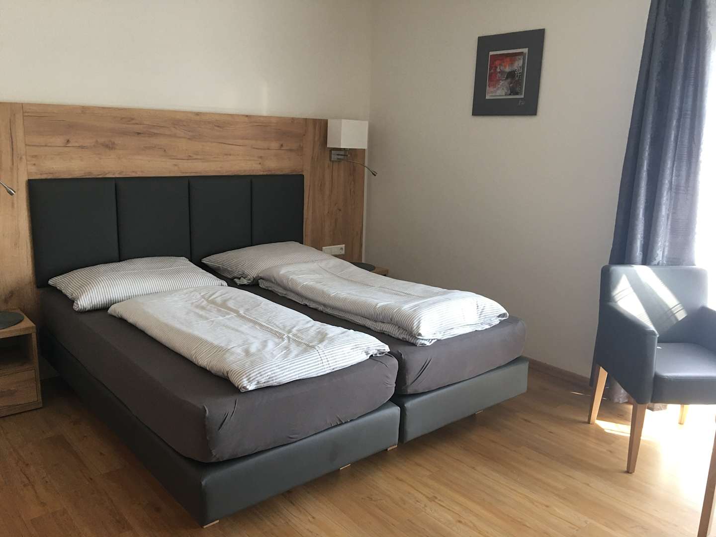 Sehr schönes Bett mit tollen Matratzen. Sehr stilvoll eingerichtet - alles sehr stimmig- vom Bett über die Bettwäsche, Vorhänge, Möbiliar. Sogar eine Küchenzeile ist noch integriert